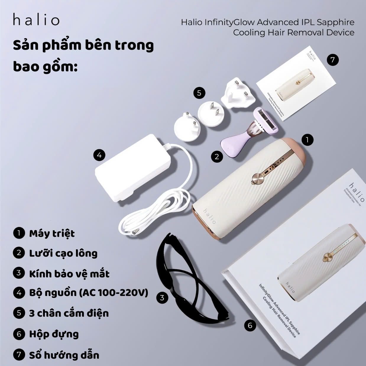 - 01 Máy Triệt Lông Halio InfinityGlow Advanced IPL Sapphire Cooling
