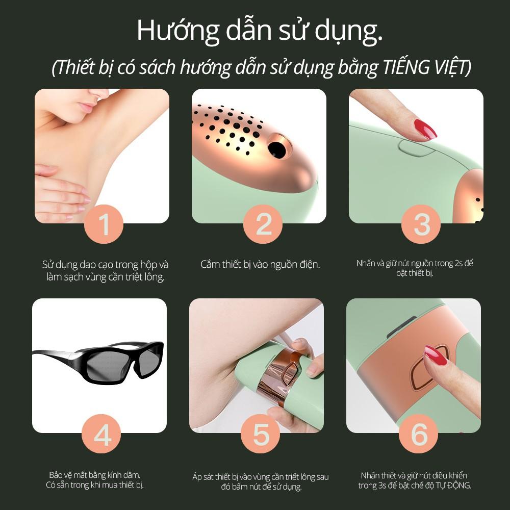 Máy triệt lông vĩnh viễn mini cầm tay IPL chính hãng tẩy lông nách, lông tay, chân, lông vùng kín tại nhà tặng kèm kính và dao cạo -【Triệt lông vĩnh viễn & An toàn】