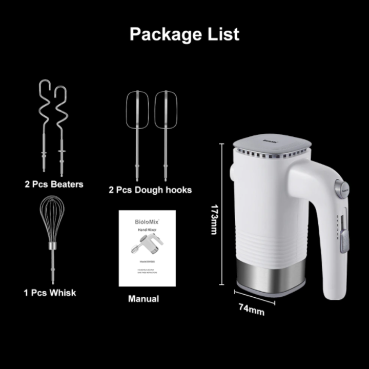 - Máy đánh trứng Biolomix BM688 đi kèm 2 que trộn, 2 que đánh trứng và 1 que tạo bọt, hỗ trợ bạn thực hiện công việc đánh trứng, tạo bọt, trộn bột đơn giản, nhanh chóng. Que trộn dễ tháo rời ra khỏi thân máy để vệ sinh Hướng dẫn sử dụng