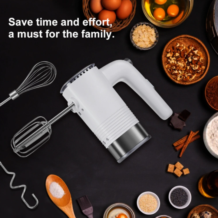 - Phụ kiện kèm theo: 1 x Máy trộn, 2 x Que đánh trứng, 2 x Que đánh bột, 1 x Que tạo bọt