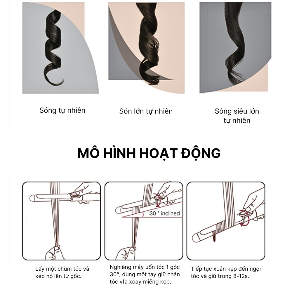Máy Uốn Tóc Xoăn Sóng Nước Size 36mm 3 Chế Độ Nhiệt, Tích Hợp Iọn Bảo Vệ Tóc Hư Tổn, Bh 6 Tháng
