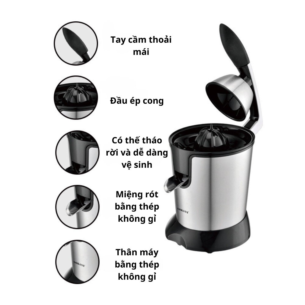 - Điện áp: 220V 2.TÍNH NĂNG NỔI BẬT CỦA MÁY VẮT CAM SOKANY SK-651E:
