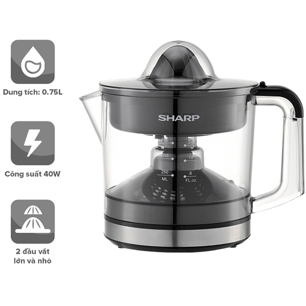 Máy vắt cam Sharp thiết kế gọn nhẹ, màu trắng sáng tươi trẻ, có tay cầm chắc chắn Chuyên dụng để vắt các loại hoa quả họ cam như cam, bưởi, quýt, chanh,… đáp ứng nhu