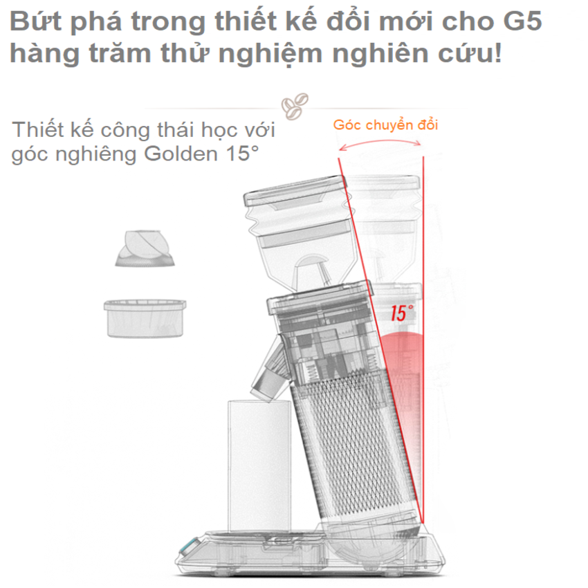 - 15º góc xay sáng chế phân tán đồng đều bột cà phê