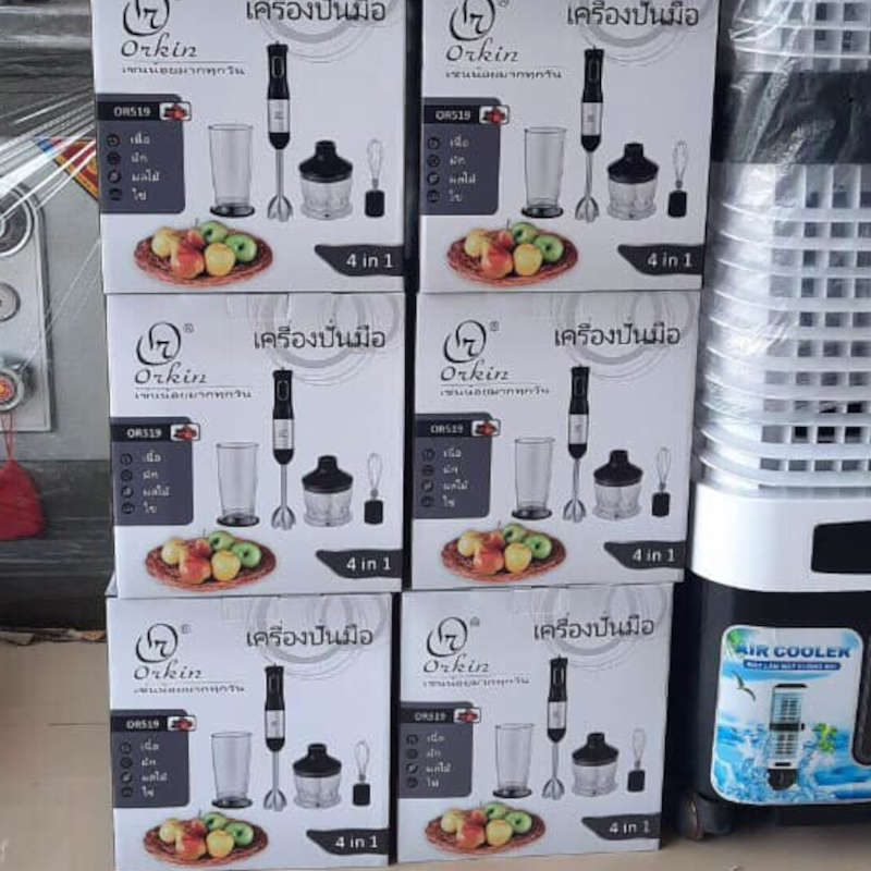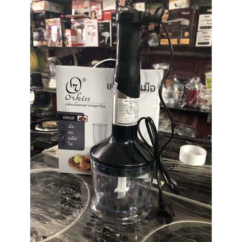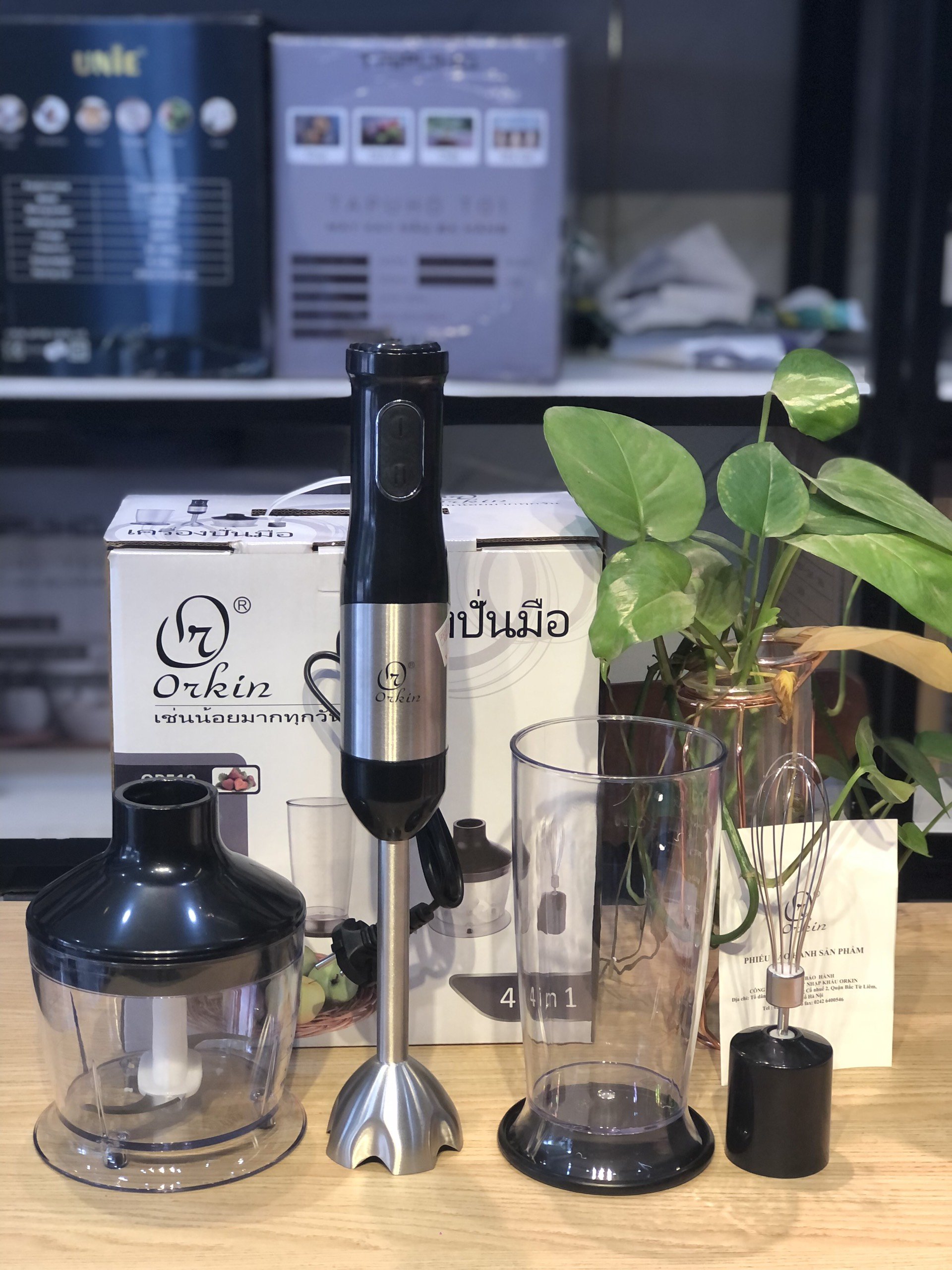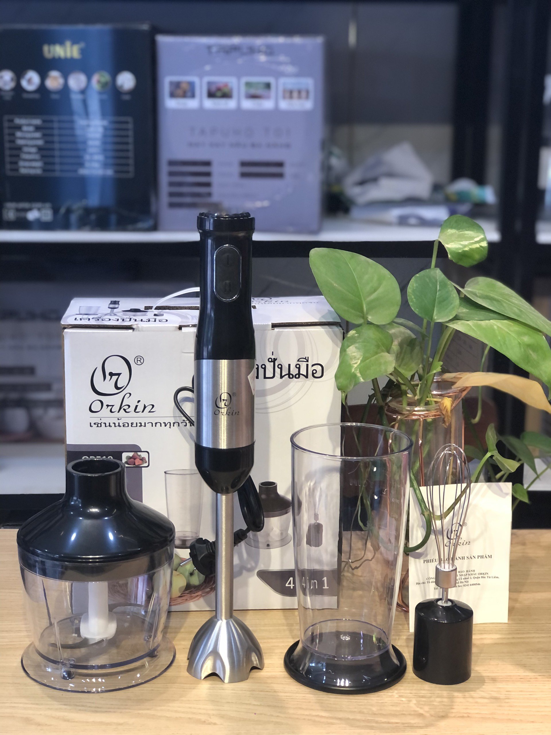 Máy xay cầm tay đa năng 4 trong 1 Orkin Thái Lan OR519 bảo hành 12 tháng Loại: Máy xay cầm tay đa năng Loại điều khiển: Nút bấm Model: OR519 Thương hiệu: Orkin Thái Lan Công nghệ sản xuất Thái Lan Công suất: 800W Điện áp: 220V - 50Hz Kích thước đóng hộp: 35 x 30 x 20 cm Trọng lượng: 2.2 kg Dụng tích: 500ml Chất liệu: Nhựa không chứa BPA, lưỡi dao Thép không gỉ Chức năng: Máy xay sinh tố, máy xay thực phẩm, máy đánh trứng, Xay Thịt, Xay Ngũ Cốc ... kèm theo cốc đựng Tốc độ vòng quay: 15000 RPM Sản xuất tại Trung Quốc Bảo hành 12 tháng chính hãng bởi Tập Đoàn Orkin Thái Lan - Việt Nam Đặc điểm nổi bật