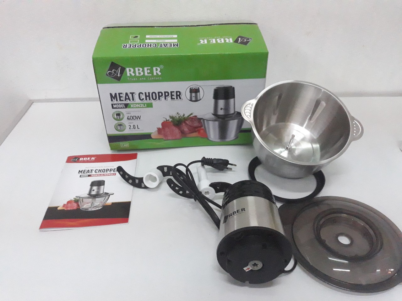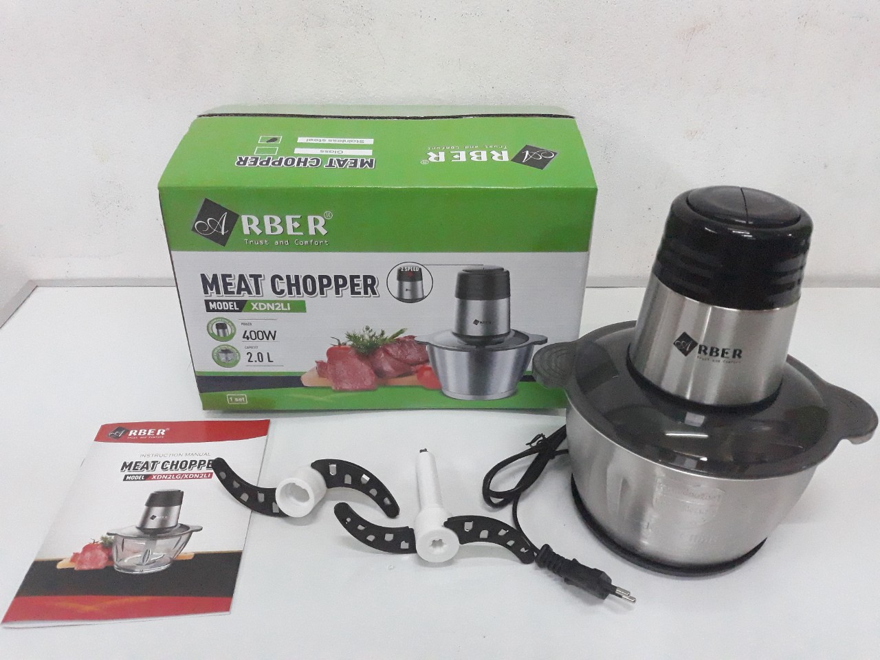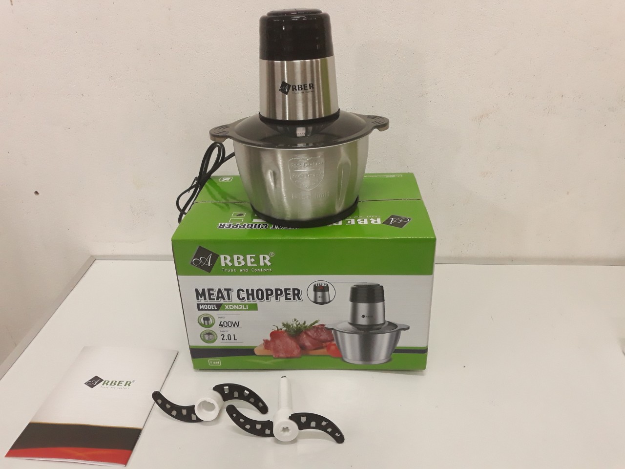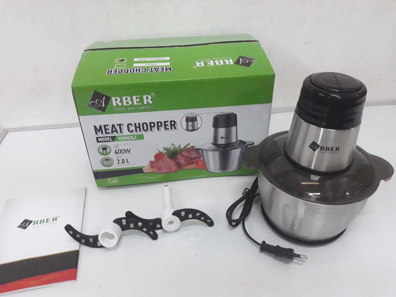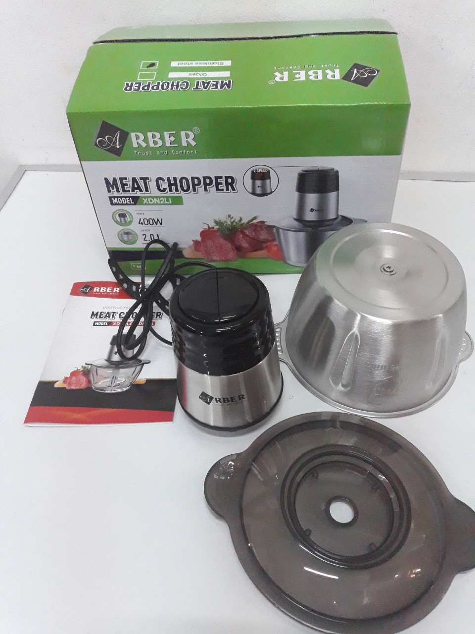 Với công nghệ chế tạo Arber XĐN2LI - Máy xay thịt nhanh chóng và an toàn, vệ sinh thuận tiện. Thiết kế đẹp mắt giúp tôn vinh không gian bếp, vận hành tối ưu, Máy xay đa năng Arber được thiết kế với 2 tốc độ cùng hệ lưỡi dao kép xoáy ngược đẩy thực phẩm xuống đáy bảo đảm không bị tràn ra ngoài. Phần thân trên động cơ được thiết kế bằng inox sang trọng với 3 lớp cách điện bên trong.