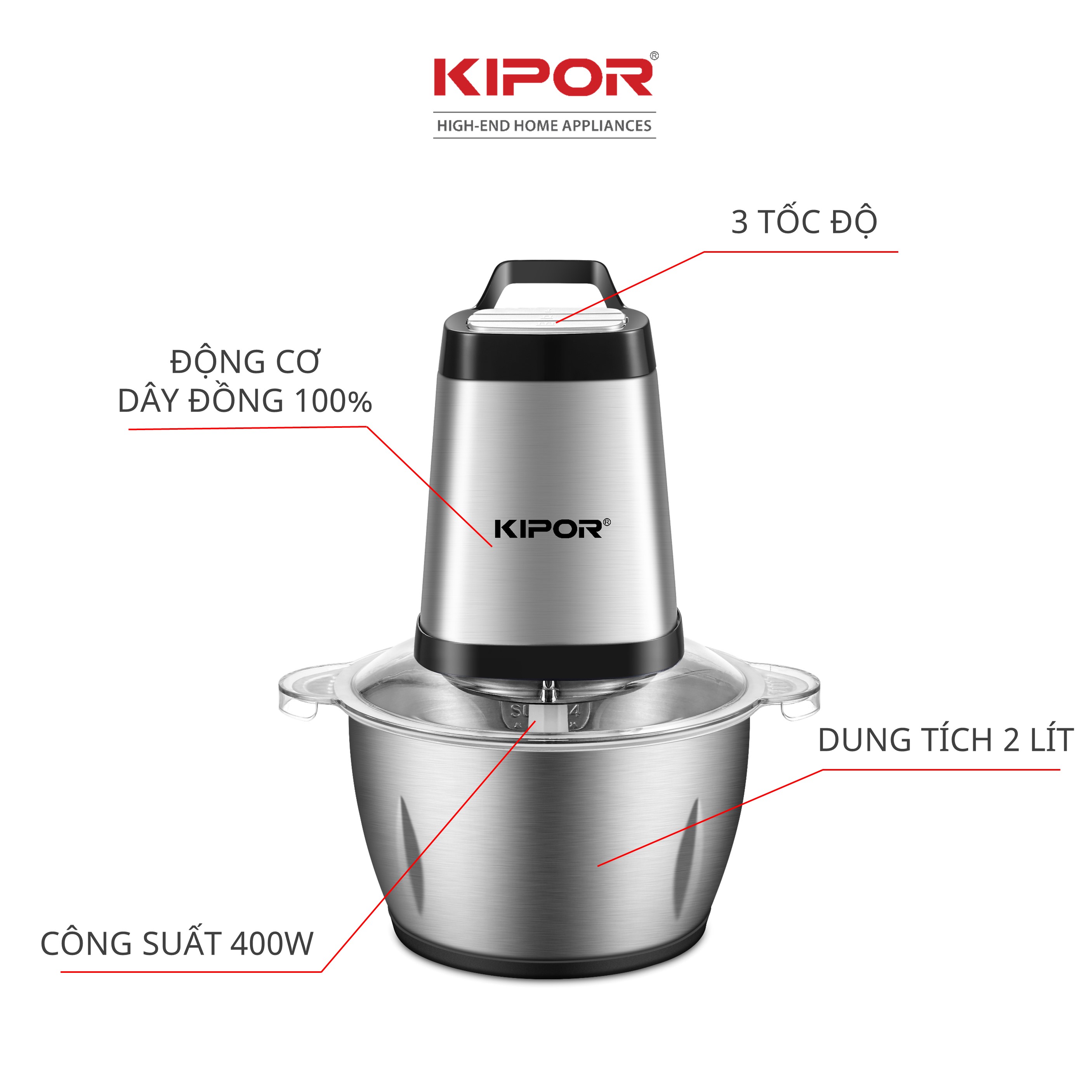 ✨Máy xay thịt đa năng KIPOR KP-MC502 - Cối Inox 304, dung tích 2L, 4 lưỡi dao bằng thép (400W) - Hàng Chính Hãng