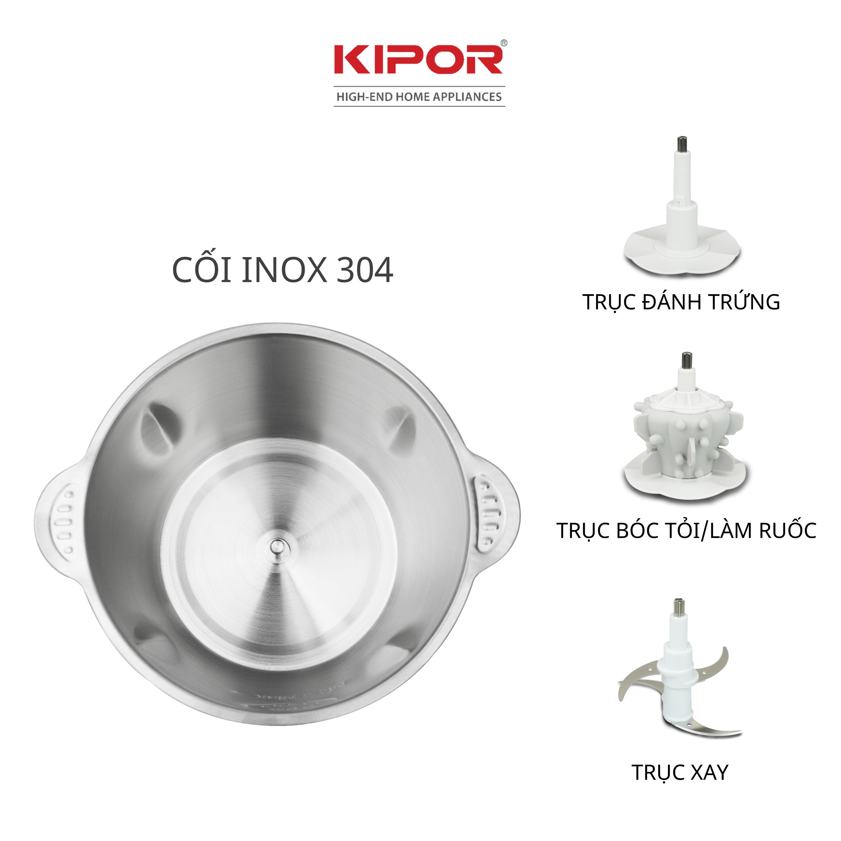 - Chức năng chính: Xay đa năng ( thịt, sinh tố, gia vị), bóc tỏi, đánh trứng, làm ruốc…