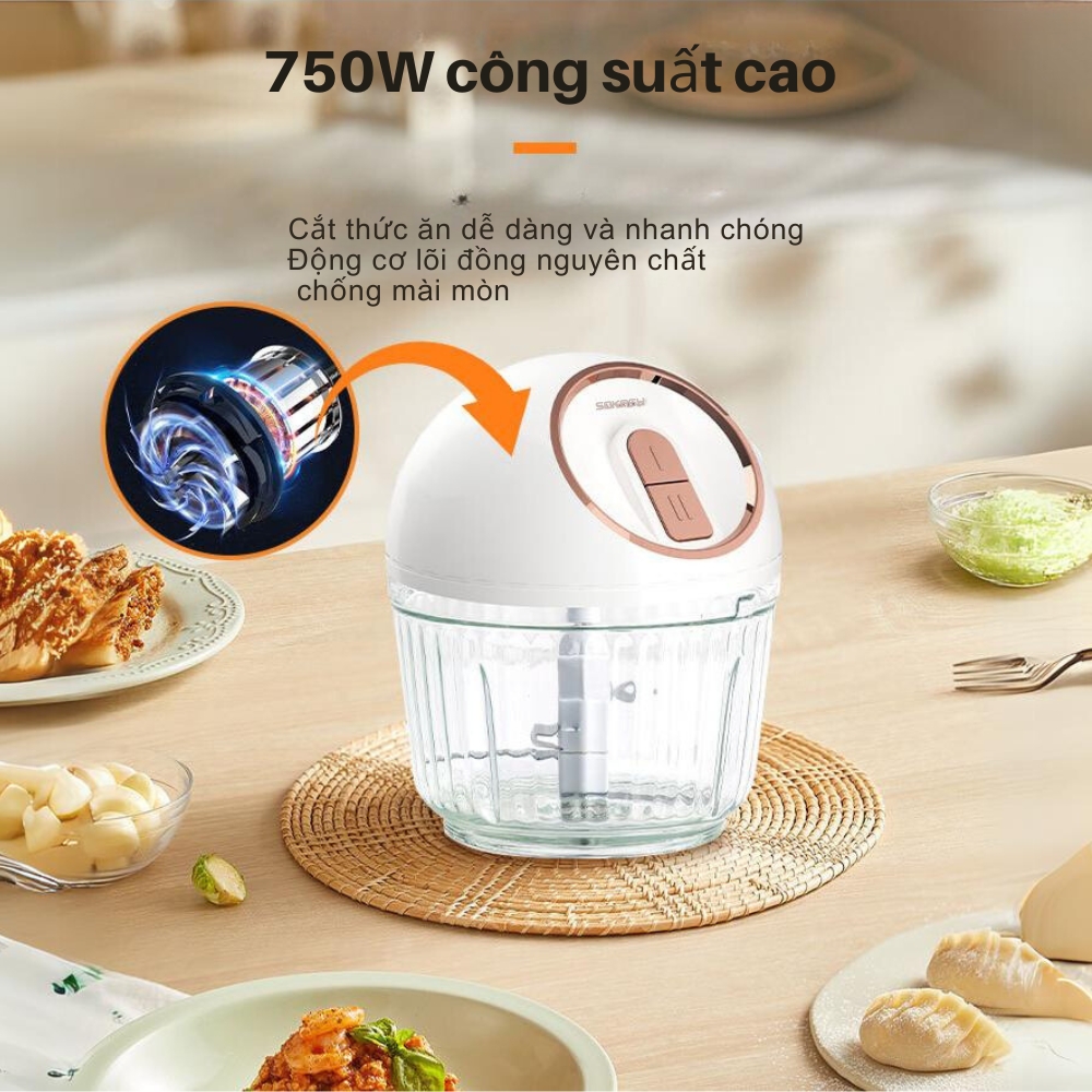 - Động cơ công suất 750W mạnh mẽ giúp xay nhuyễn mọi thứ