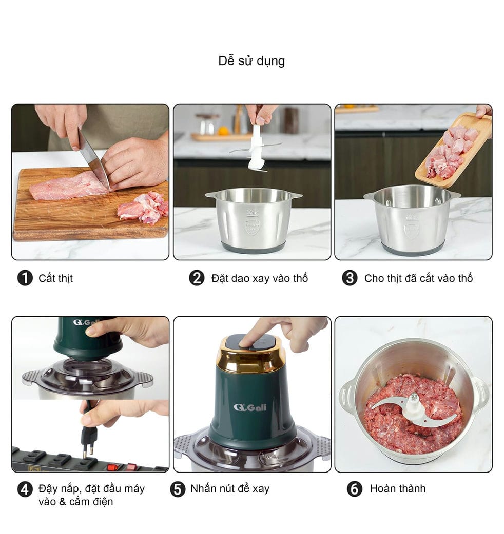 Máy xay thịt Gali GL-1920A 2 lít đa năng được sử dụng để xay nhuyễn các loại thực phẩm như thịt, cá, rau củ quả để làm các món ăn như xúc xích, pate, thịt băm, hay các món canh, nấu súp.