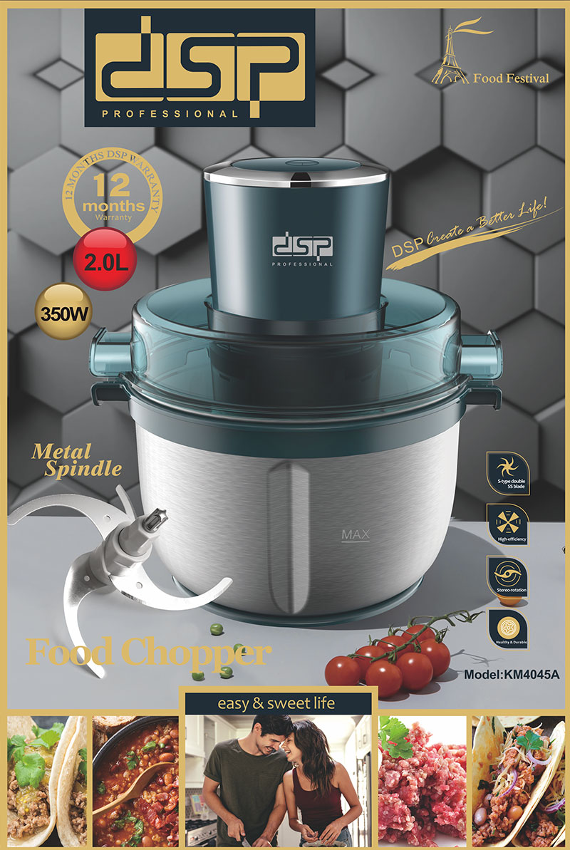 ✨Máy xay thịt, rau củ quả nhãn hiệu DSP KM4045 Dung tích: 2L - Công suất: 350W Chất liệu cối xay: Thép không gỉ, nhựa ABS - HÀNG CHÍNH HÃNG