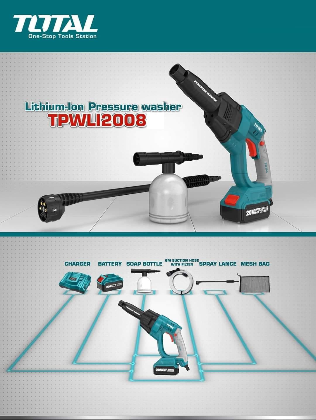 ✨MÁY XỊT RỬA DÙNG PIN 20V (KHÔNG KÈM PIN VÀ SẠC) TOTAL TPWLI2008 - HÀNG CHÍNH HÃNG