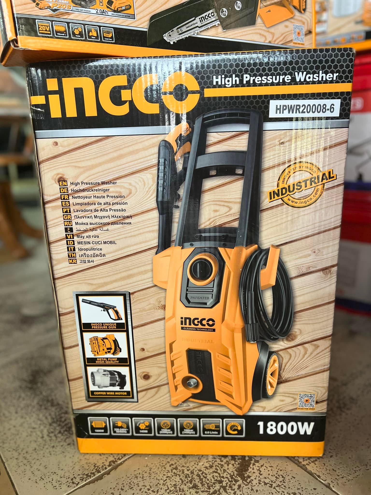 1800W Máy xịt rửa xe áp lực INGCO HPWR25008 Máy xịt rửa INGCO HPWR25008 là một trang bị tấn tiến và hưu ích giúp bạn có thể làm sạch mọi thứ một cách nhanh