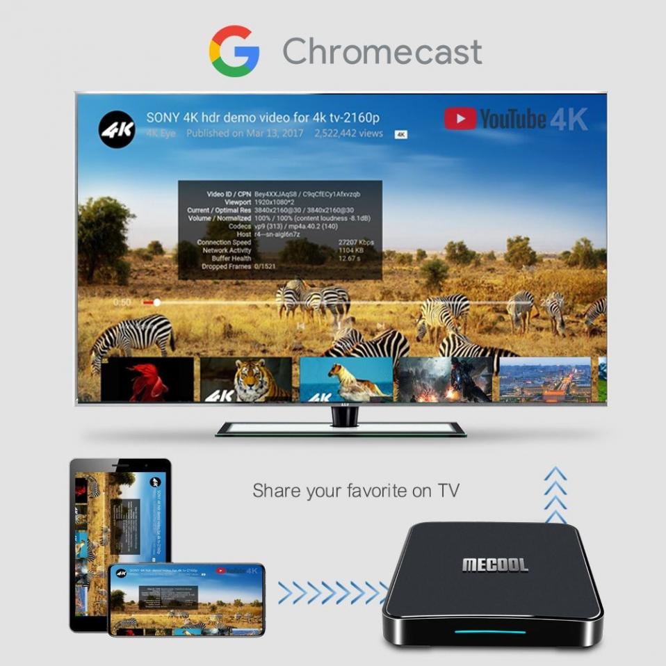 Mecool KM1 bản quyền google điều khiển giọng nói tiếng Việt Ram 4G Rom 64G bluetooth Android tivi box - Hàng Nhập Khẩu km1 phiên bản quốc tế điều khiển giọng nói có tiếng Việt RAM: 4GB Rom : 64G CPU: Amlogic S905X3 Wifi kép 2.4G & 5G mới, chip wifi 2 băng tầng Hệ điều hành Android TV ATV bản quyền google version Bluetooth 4.2 Cài sẵn ứng dụng xem phim, tivi truyền hình cáp miễn phí vĩnh viễn Chống lag và giật khi sửdụng, thời gian khởi động nhanh Cài đặt sẵng kho ứng dụng miễn phí xem phim, karaoke, đọc báo, lướt web, coi truyền hình Xem truyền hình cáp trên 100 kênh miễn phí vĩnh viễn Karaoke suốt cả ngày với các ứng dụng Karaoke chuyên nghiệp đã được cài đặt sẵn. Android TV Box Mecool KM1 4GB Ram Android TV 9 Bản quyền Google ATV điều khiển giọng nói Sản phẩm có sự đột phá trong công nghệ voice  Chỉ cần nói tên bài hát bất kỳ thiết bị tìm kiếm ra kết quả không cần nhập từng ký tự   CÓ TÌM KIẾM GIỌNG NÓI BẰNG TIÊNG VIỆT km1 của Mecool được cài đặt HĐH Android TV được Google cấp phép chứ không phải là các HĐH Android TV tùy chỉnh không cấp phép như đại đa số các box hiện nay. Sản phẩm chính chủ sẽ được hỗ trợ tốt từ NHÀ SẢN XUẤT cũng như Google giúp người dùng sử dụng ổn định Thiết kế đẹp và sang trọng TV Box MECOOL KM1 nổi bật với thiết kế ngoài sang trọng, sử dụng chất liệu nhựa cao cấp tạo nên cái nhìn ấn tượng bởi logo MECOOL khắc nổi ở mặt trước. Android TV Box MECOOL km1 được tích hợp thêm một chiếc đèn LED để báo tín hiệu trang thái sử dụng của thiết bị Mặt sau được trang bị khe tản nhiệt bằng hợp kim chắc chắn và cứng cáp toát lên vể sang trọng cho thiết bị. Hệ Điều Hành mecool km1 ATV  Và Chip Xử Lý S905X3 Mecool Km 1 được chạy hệ điều hành Android TV chính chủ Google giúp người dùng có thể cải thiện tốc độ xử lý của đầu box, nhưng hệ điều hành này lại không chiếm quá nhiều dung lương bộ nhớ của đầu box chắc chắn sẽ mang lại cho bạn một trải nghiệm tuyệt vời nhất. Ngoài ra Mecool km1 được trang bị chip xử lý Amlogic S905X3 mới với cấu hình mạnh mẹ đáp ứng mọi nhu cầu giải trí của bạn hỗ trợ đầy đủ video 4K UHD cao cấp, CPU 64bit mạnh mẽ kết hợp Cortex A53,Quad Core xử lý đồ họa 4K tốt hơn so với hầu hết các sản phẩm trên thị trường. Cấu hình mạnh mẽ với bộ nhớ trong mở rộng Trang bị bộ nhớ RAM 4GB DDR4 cho hiệu suất cao, với bộ nhớ mở rộng dùng để lưu trữ nhiều phần mềm, ứng dụng xem phim, xem truyền hình, hát karaoke cùng các game khủng, bộ sưu tập nhạc, xem phim offline… Đặc biệt, MECOOL km1 được nâng cấp với công nghệ chip Wi-Fi MIMO giúp bắt sóng wifi tốt, không bị nhiễu với đường truyền liên tục và tốc độ nhanh hơn. Tích hợp thêm Wifi 2 băng tần 2.4Ghz và 5Ghz tăng khả năng bắt sóng tối ưu.     Voice Remote hỗ trợ tìm kiếm bằng giọng nói MECOOL km1 là hộp truyền hình được chứng nhận bản quyền bởi Google và được tích hợp sẵn một số tính năng vượt trội. Đặc biệt nhất là khả năng nhận diện giọng nói nhanh nhạy, tìm kiếm nội dung dễ dàng, dù ở khoảng cách xa, dựa trên điều khiển remote kèm theo Box. Lưu ý hỗ trợ cả tiếng việt Hình ảnh tái tạo sắc nét TẤT CẢ ĐÃ CÓ TRONG THIẾT BỊ ANDROID TV  Thông Số Kĩ Thuật: Specification General Brand: MECOOL Model: KM1 Type: TV Box GPU: Mali-G31 System: Android  CPU: Amlogic S905X3 Core: Quad Core RAM: 4G RAM RAM Type: DDR4 Color: Black Media Supported Decoder Format: H.263, H.264, H.265, HD MPEG4 Audio format: AAC, AAC, FLAC, AVE, MP3, OGG, RM, WMA, WMV Video format: VP9 Profile-2 up to 4Kx2K @ 60fps H.265 HEVC [email protected] up to 4Kx2K @ 60fps AVS2-P2 Profile up to 4Kx2K @ 60fps H.264 AVC [email protected] up to 4Kx2K @ 30fps Photo Format: JPG, JPEG, BMP, GIF, PNG, JFIF etc photo format Support 5.1 Surround Sound Output: Yes Product Details 5G WiFi: Yes WIFI: 802.11 b/g/n/ac Bluetooth: Bluetooth 4.2 Power Supply: Charge Adapter Interface: AV,DC 5V,HDMI,LAN,TF card,USB2.0,USB3.0 Antenna: Yes Language: Multilanguage HDMI Version: 2.1 Other Functions: Chromecast,Google Assistant,Others HDMI Function: HDCP Power Consumption.: 5W RJ45 Port Speed: 10/100Mbps Power Requirement Power Type: External Power Adapter Mode Power Input Vol: 5V Power Adapter Input: 100-240V / 50-60Hz Power Adapter Output: 5V 2A Battery Information Remote Controller Battery: 2 x AAA Battery ( not included )