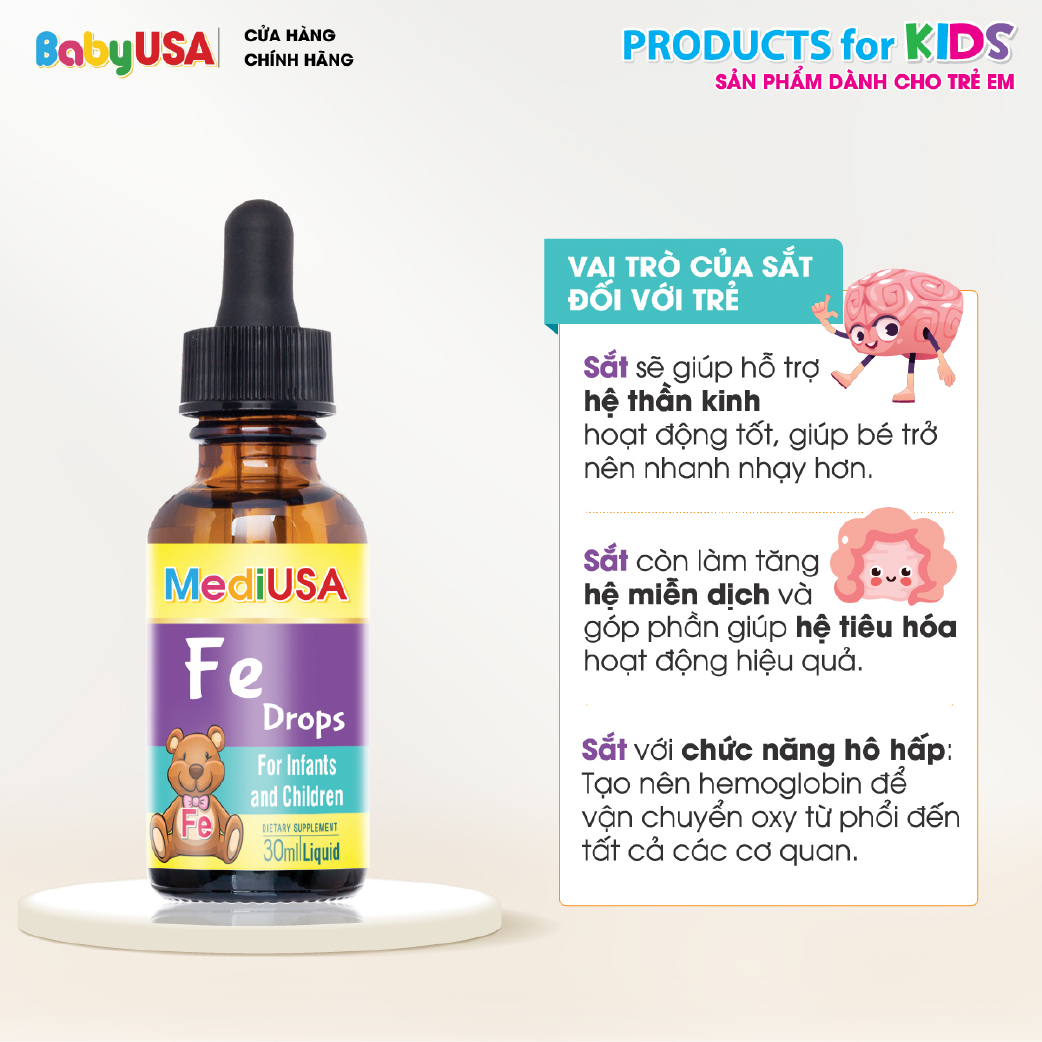 ✨MediUSA Fe Drops - Thực Phẩm Chức Năng cung cấp Sắt, tái tạo hồng cầu cho trẻ, tăng sức đề kháng - Hàng chính hãng