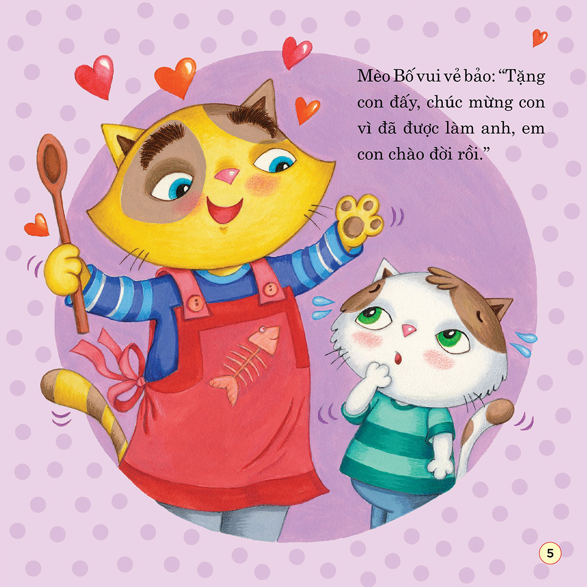 Mèo Con đã trở thành anh trai của em gái nhỏ, nhưng cậu cảm thấy chưa sẵn sàng. Mỗi khi nhìn thấy bố mẹ chăm sóc em, Mèo Con tự hỏi: “Liệu bố mẹ có còn yêu thương mình?” Mèo Con có giải tỏa được những băn khoăn, lo lắng này không? Bé hãy đọc truyện để biết nhé.