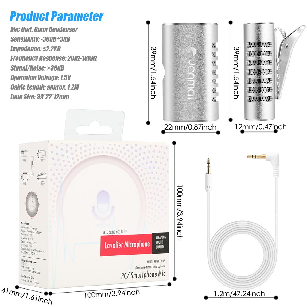 Professional mini lavalier microphone, suitable for computers, laptops, smartphones or other recording devices. High sensitivity and low handling noise, producing excellent sound effect and providing you clear and accurate voice when recording. Suitable for Youtube/Podcast, home studio recording, field recording, lectures, interview, stage performance, self-media recording and public speaking, etc. Compact size and mini design, easy to carry.