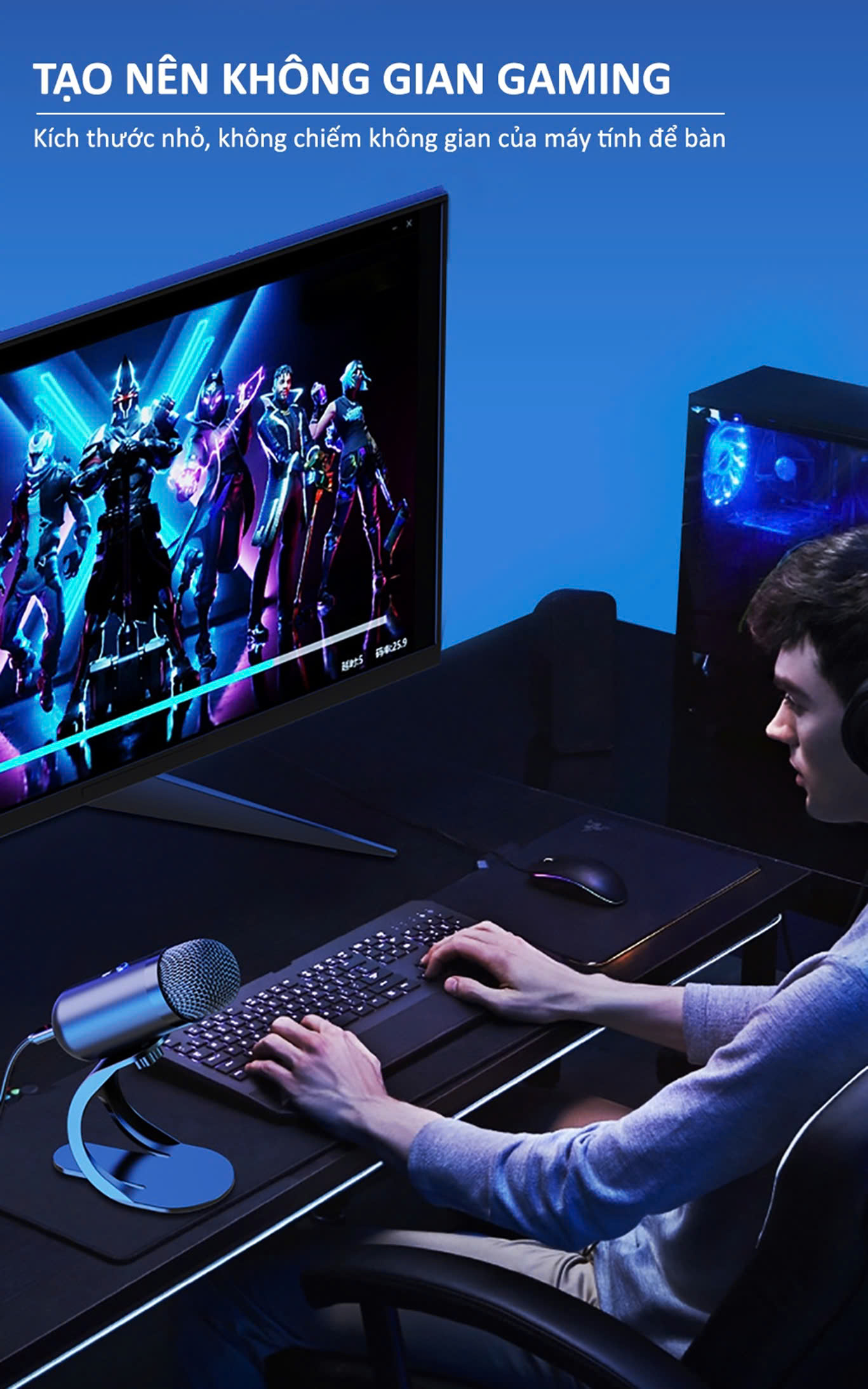 Được thiết lập cho các thiết lập tối giản hoặc nhỏ hơn, micrô tụ điện nhỏ gọn này hầu như không chiếm bất kỳ không gian máy tính để bàn nào nên tiêu điểm luôn ở bạn, dễ dàng mang theo.
