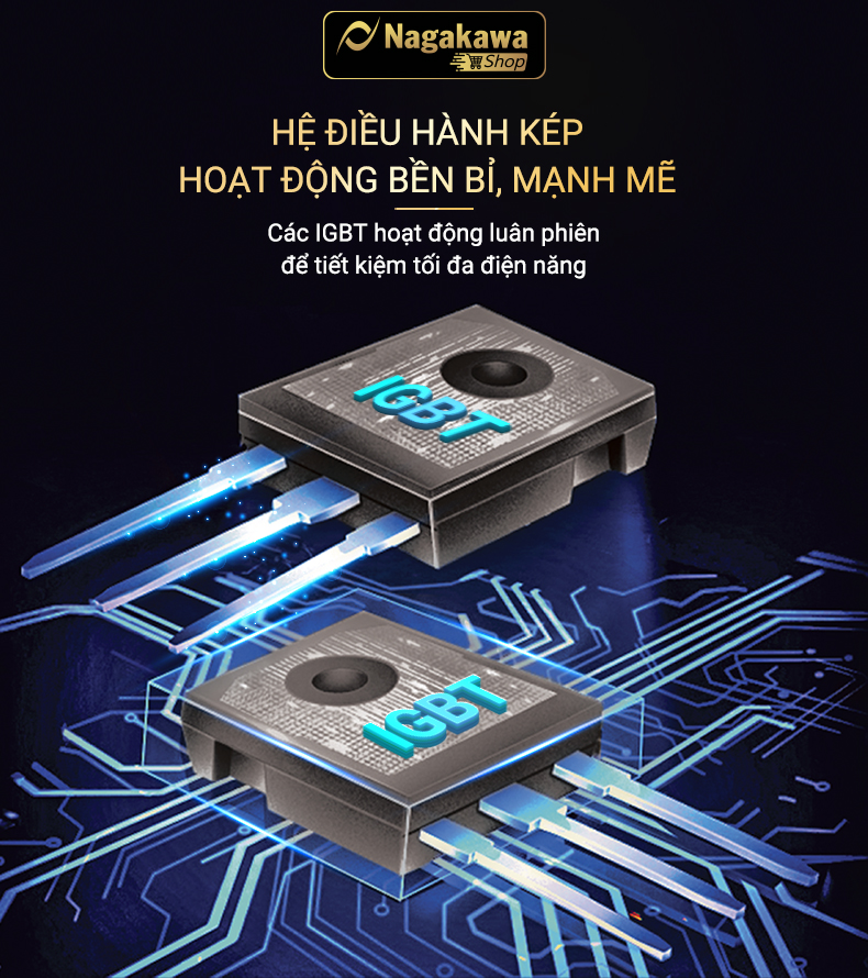 Hệ điều hành kép là ưu điểm vượt trội của bếp đôi điện từ hồng ngoại Nagakawa NAG1252M. Bếp Nagakawa thế hệ mới sử dụng 2 hoặc nhiều thanh công suất IGBT tạo thành cơ chế hoạt động thông minh: các IGBT có thể hoạt động đồng thời giúp cho bếp có thể đạt công suất tối đa 2400W trong vòng vài giây. Đồng thời, các IGBT có thể hoạt động luân phiên theo lệnh điều hành từ trung tâm, nhờ công nghệ biến tần giúp tiết kiệm năng lượng và đảm bảo tuổi thọ của bếp.