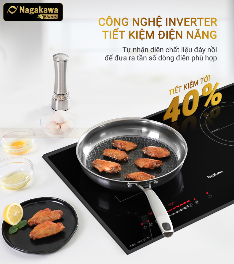 Bếp đôi điện từ hồng ngoại Nagakawa NAG1252M sử dụng công nghệ biến tần Inverter kiểm soát công suất của thiết bị, nhằm tránh hao phí năng lượng trong quá trình sử dụng. Nguyên tắc cơ bản của công nghệ Inverter là dựa trên kiểm soát từng tần số dao động (Hz) của các bảng mạch bên trong bếp, giúp đảm bảo độ ổn định của bếp, tiết kiệm tối đa năng lượng và gia tăng tính năng thông minh cho bếp.