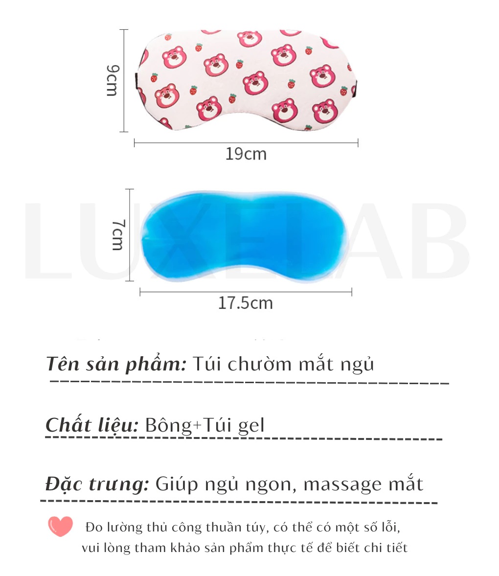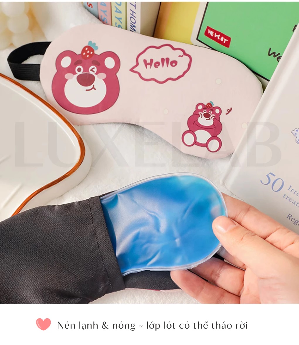 Bịt Mắt Ngủ Gấu Dâu Có Túi Làm Mát – Giấc Mơ Êm Ái