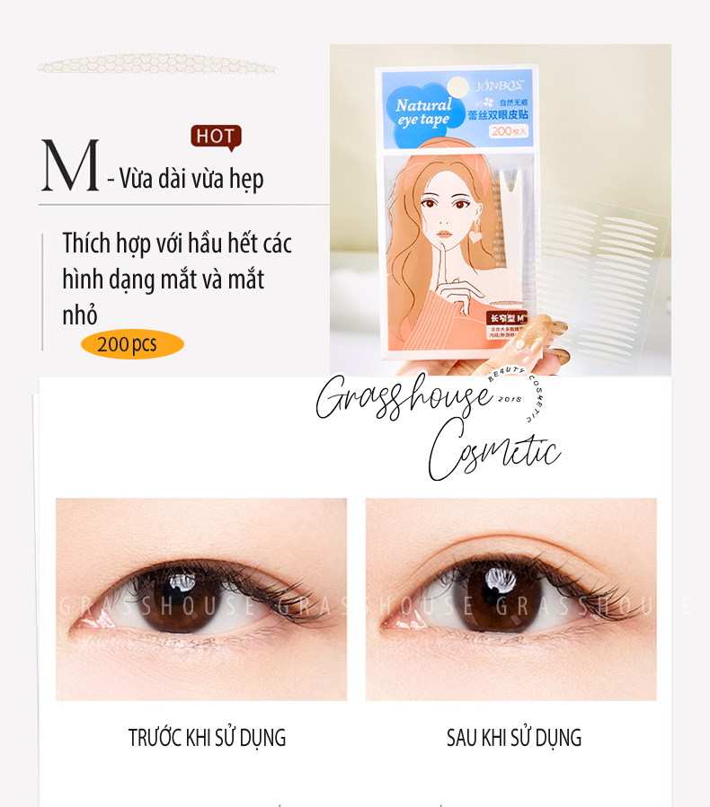 ✨Miếng Dán Kích Mí Mắt Tự Nhiên vô hình thoáng khí Jonbos