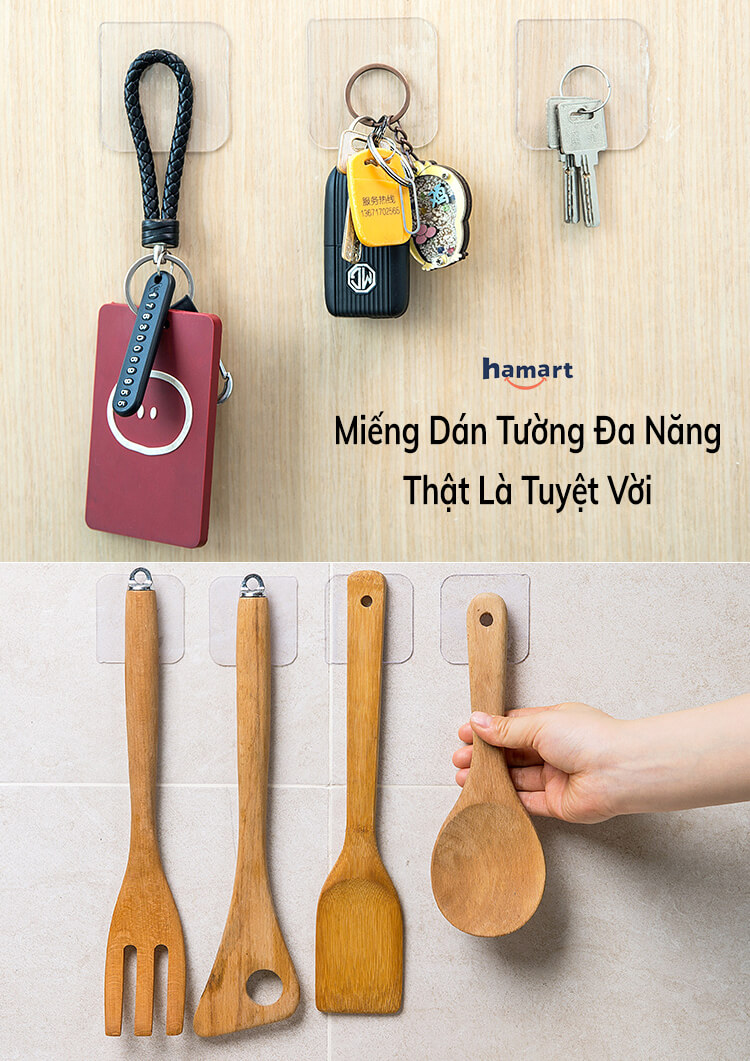 Móc dán tường siêu dính, siêu tiện lợi Sản phẩm được sử dụng linh hoạt, có thể dán vào bất cứ chỗ nào trên tường hoặc trên trần. Có thể sử dụng tại bếp, nhà