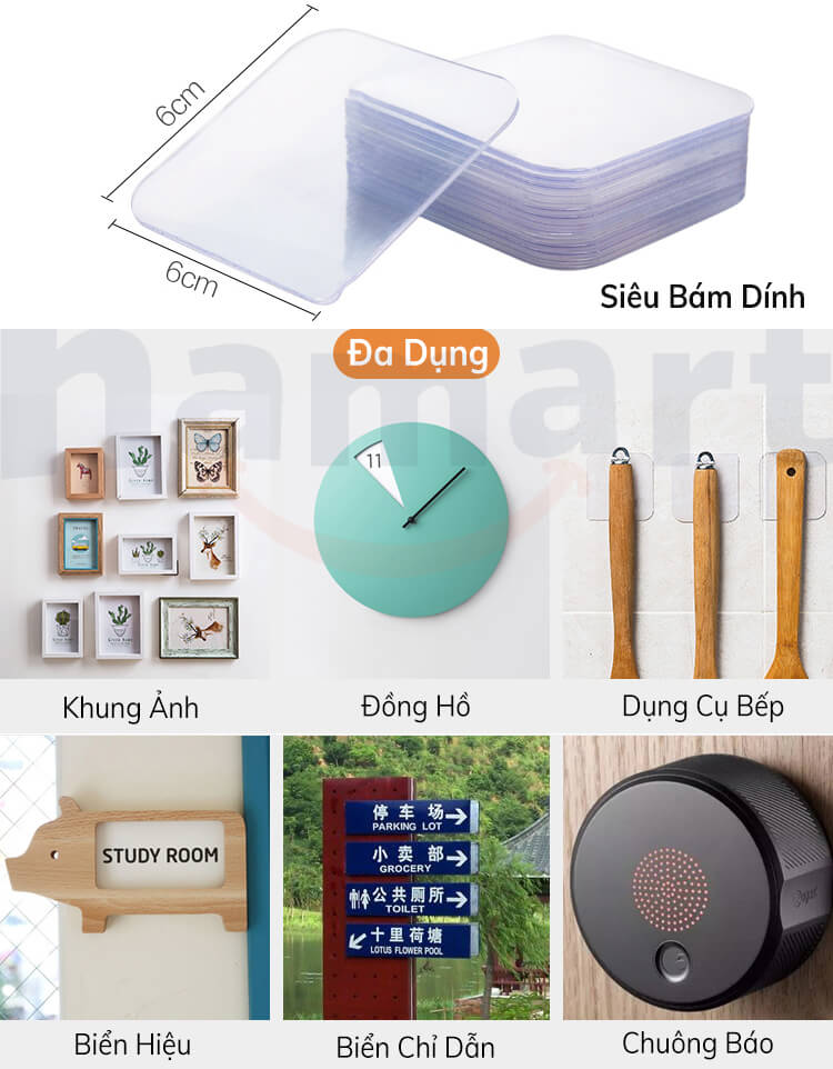 - Miếng dán 2 mặt đa năng: cố định ổ điện, kệ, giá, bảng....