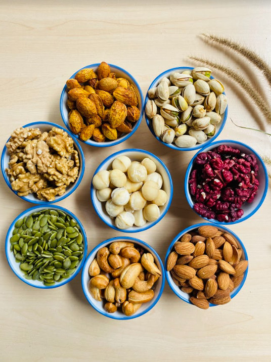 Mix hạt dinh dưỡng ăn liền tại Holinut Thành phần: Hạt bí rang, hạnh nhân rang mộc, nhân óc chó vàng, nhân macca, điều tách lụa. Quy cách: hũ/500gram Công dụng của 5 loại hạt mix điều dinh dưỡng: