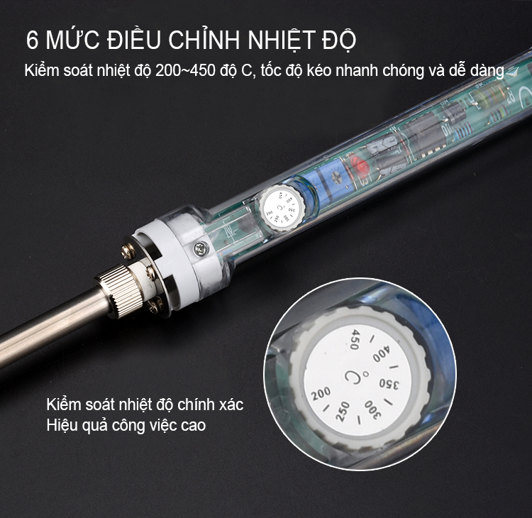 - Được thiết kế hiện đại và tiện dụng Mỏ hàn thiếc, hàn chì có điều chỉnh nhiệt độ No.907 60W sở hữu công suất tối đa lên đến 60w lại có núm điều chỉnh nhiệt độ trong khoảng 200°C – 450°C rất thích hợp cho việc hàn bo mạch điện tử. Ngoài ra, mỏ hàn điều chỉnh nhiệt độ hoàn toàn có thể dùng cho cá nhân hoặc dùng cho nhà máy sản xuất. Mỏ hàn chì điều chỉnh nhiệt độ No.907 60W điều chỉnh được nhiệt độ xuống mức thấp và đem lại kết quả hết sức thuyết phục.