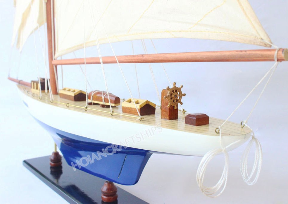 • Thân thuyền và cột buồm bằng gỗ, cánh buồm được cắt may khéo léo bằng vải.