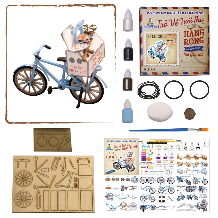 Khách lưu ý: Sản phẩm chưa lắp ráp, chưa bao gồm keo+ dụng cụ+ tượng, không áp dụng đổi tên bảng hiệu Mô Hình Xe Hàng Rong Sài Gòn Thu Nhỏ - Xe Bánh