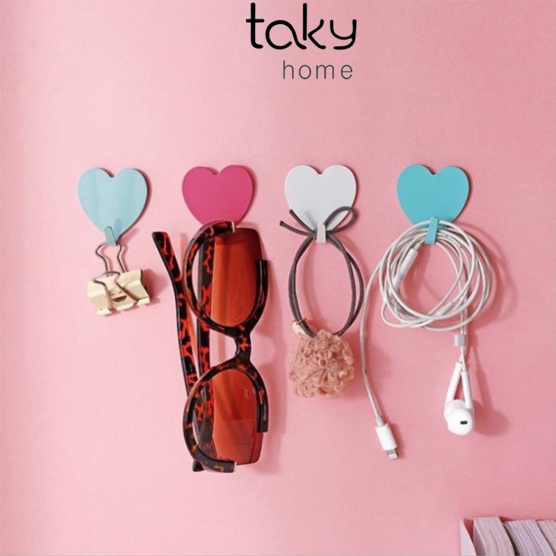 Móc Trái Tim Dán Tường Nhiều Màu Dễ Thương, Móc Treo Đồ, Móc Nhựa, Móc Dính tường Đa Năng, Treo Đồ Vật Trang Trí Trong Nhà, Taky Home, Sử Dụng Miếng Dán 3M Siêu Chắc
