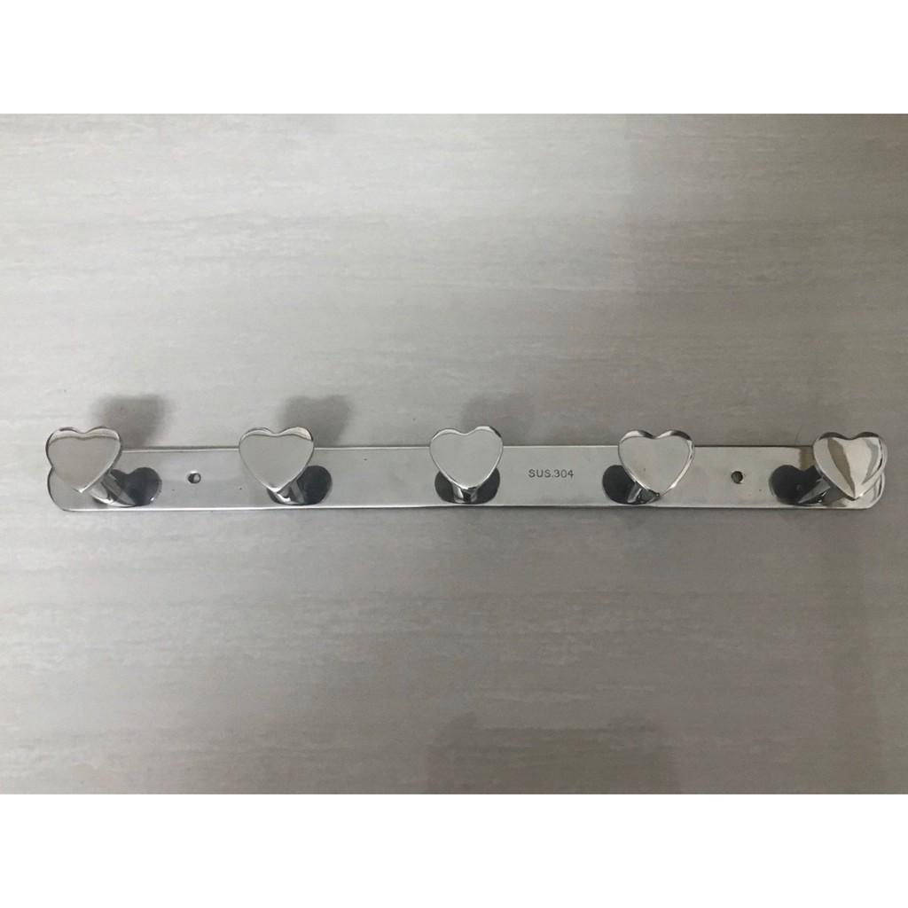 Móc treo đồ nhà tắm Inox 304 PHÁT ĐẠT (5,6,7 móc) không rỉ sét, Móc áo trái tim (SP005)