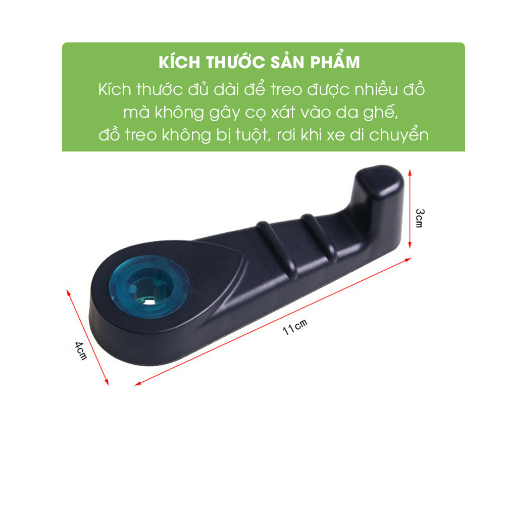 - Kích thước nhỏ gọn, tiện lợi. - Chịu lực tốt, đa chức năng. - Dùng sau ghế ô tô, treo đồ, làm giá đỡ điện thoạ