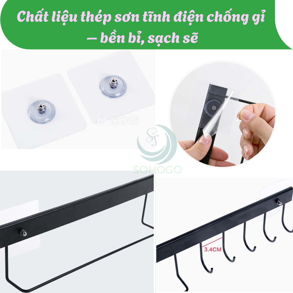 - Nhà bếp: Treo muỗng, vá, phới, khăn lau tay...