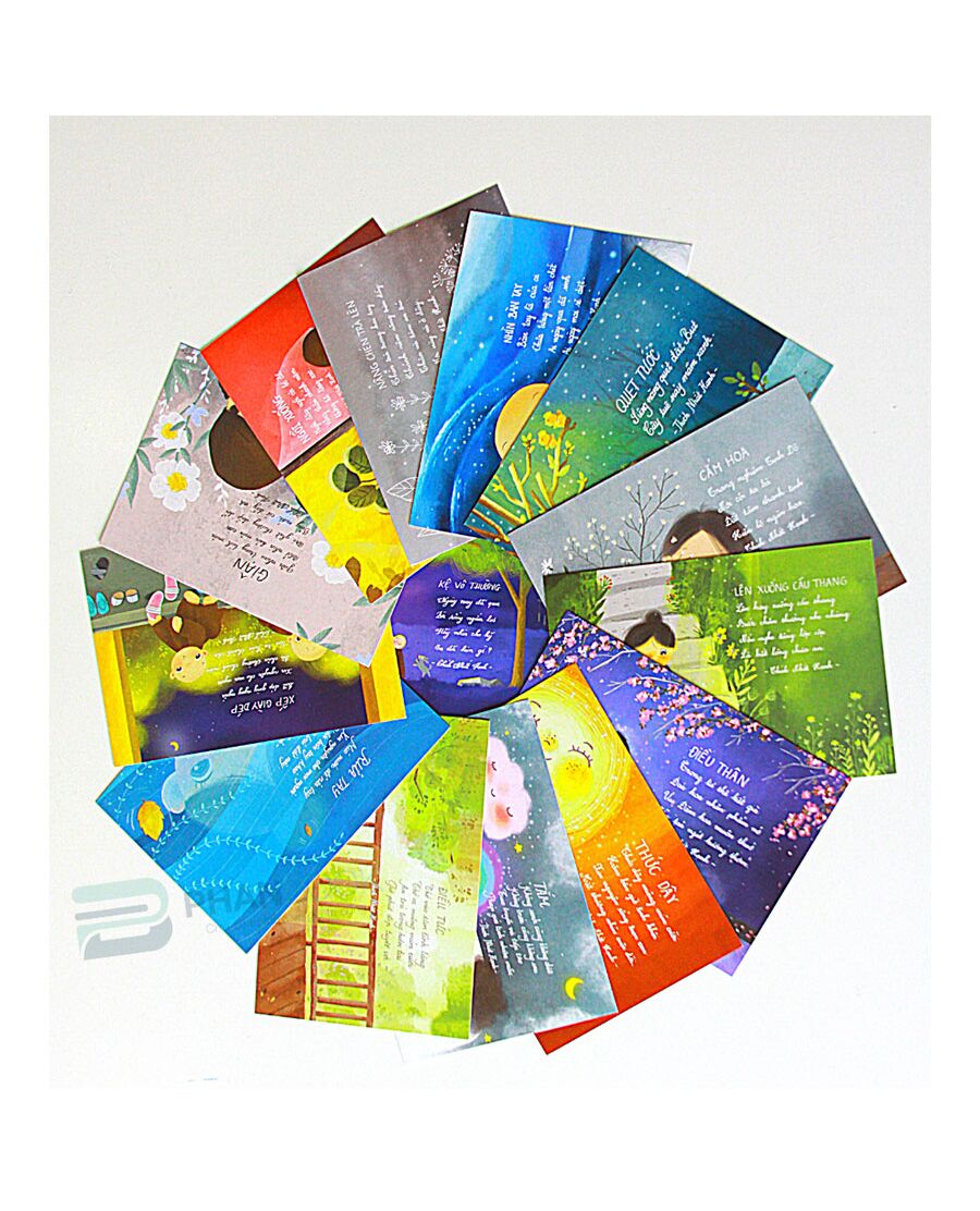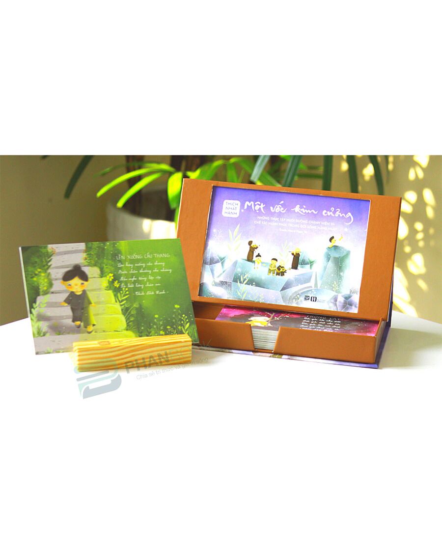 “Một vốc kim cương” là tập hợp những bài thi kệ của sư ông Thích Nhất Hạnh nhằm hướng dẫn thiền tập cho người bận rộn trong đời sống hiện đại. Bộ postcard với những nét vẽ minh họa tươi tắn, đáng yêu giúp bạn thư thái tinh thần. Phiên bản hộp cao cấp, được thiết kế trang nhã, tiện dụng với nắp hộp đóng mở, đi kèm kệ gỗ và những tờ postcard được tách rời, phù hợp để trang trí góc làm việc cá nhân thêm phần sinh động. Đây cũng là món quà xinh xắn và ý nghĩa dành tặng cho những người thân yêu của bạn trong các dịp lễ.