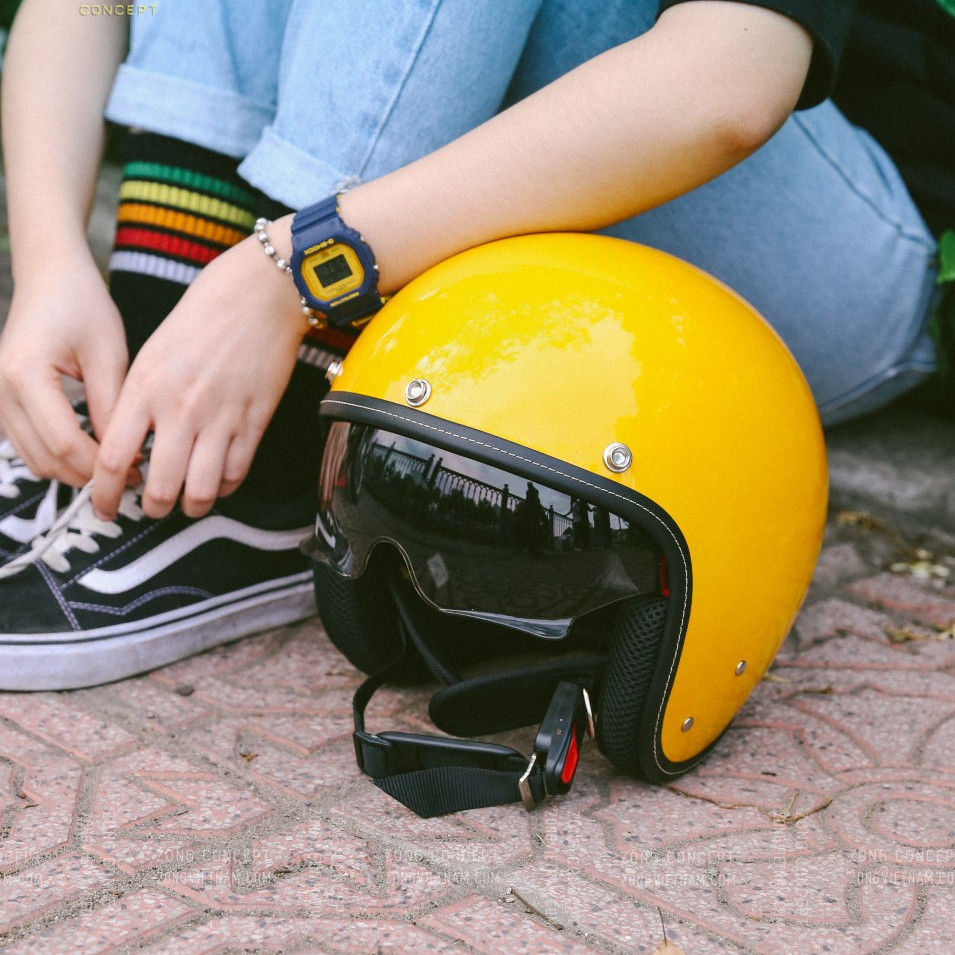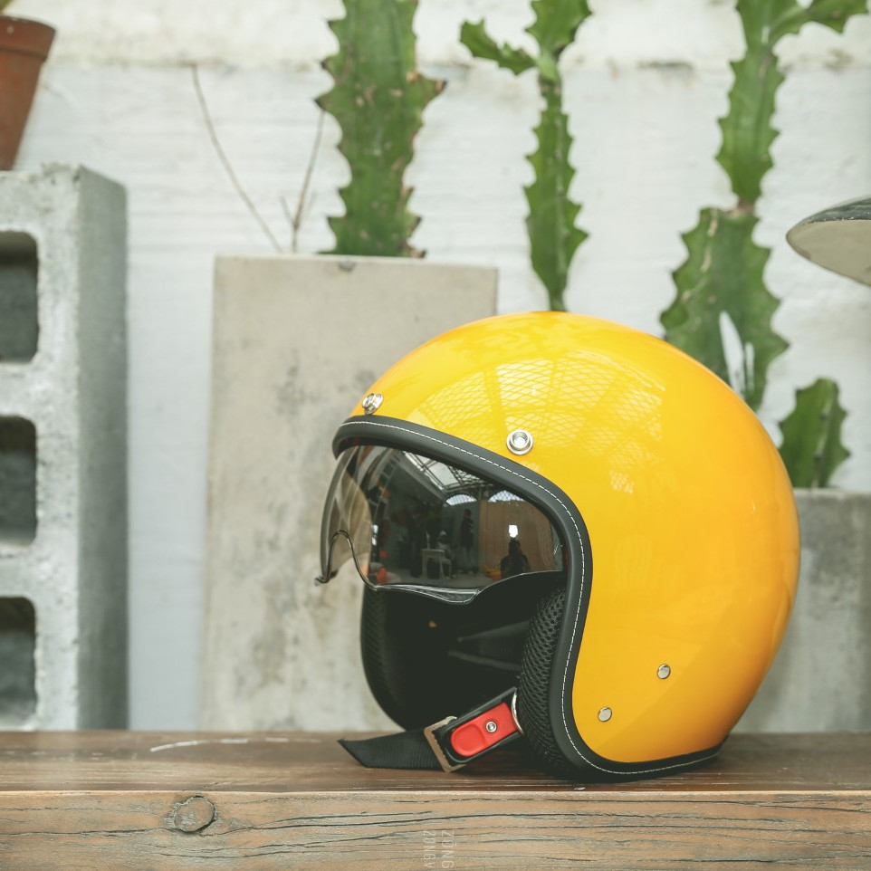 ✨Mũ bảo hiểm 3/4 Sunda 388 kính ẩn - Màu vàng bóng
