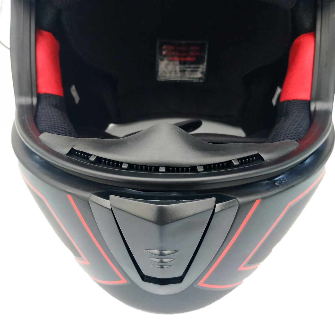 Bộ phận thông gió dưới cằm: có hình dạng hình tam giác có thể được mở bằng cách đẩy lên và có thể đóng bằng cách đẩy nắp xuống, giúp không khí lưu thông vào bên trong mũ.