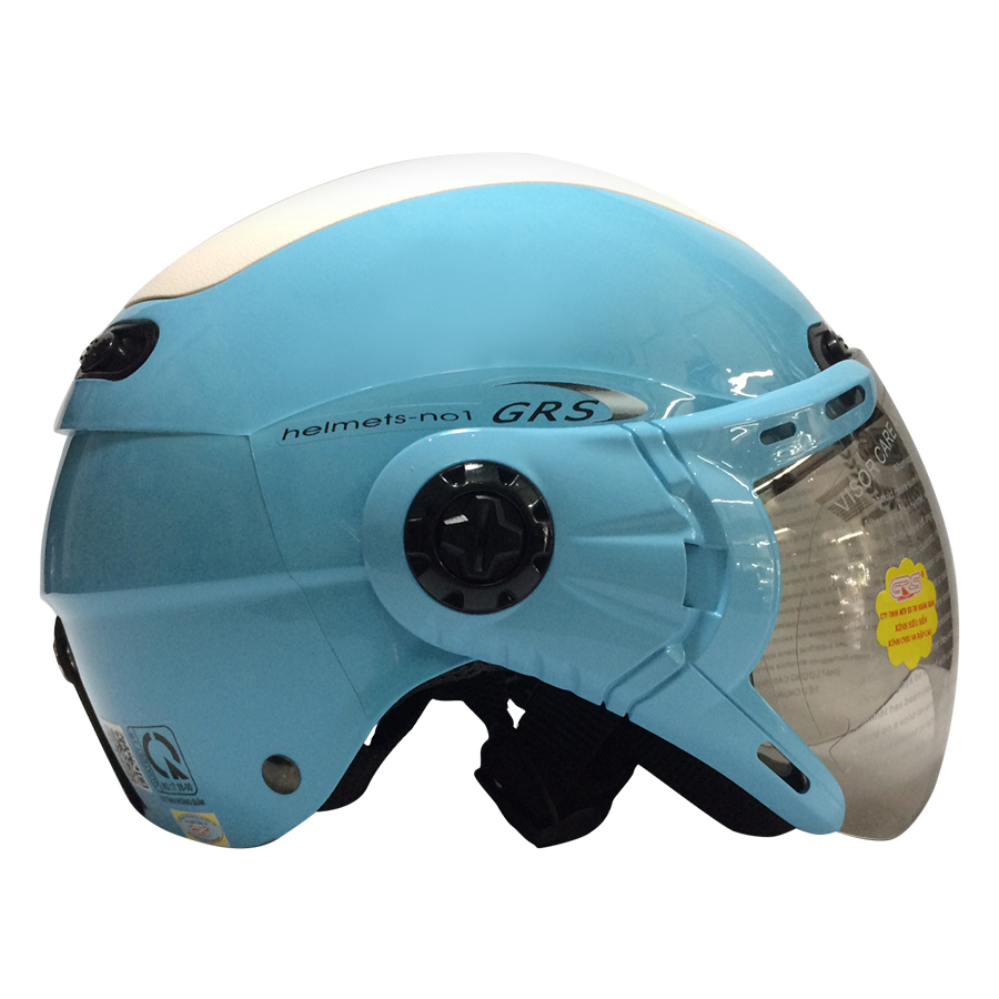 - Mũ Bảo Hiểm GRS A102K - Trắng Line Xanh là loại mũ bảo hiểm nửa đầu cao cấp dành cho người đầu nhỏ hoặc trẻ em trung học phổ thông - Mũ có thiết