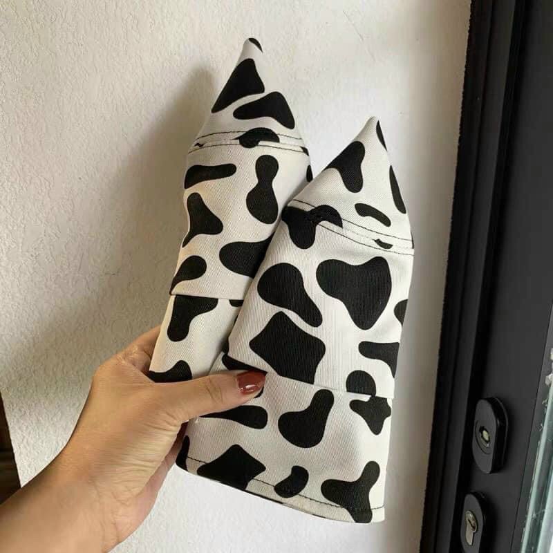 - Chất liệu: Thô - Màu sắc: Đen pha trắng - Họa tiết: bò sữa, vằn - Mũ thiết kế kiểu dáng thời trang, duyên dáng vừa có tác dụng che nắng vừa là phụ
