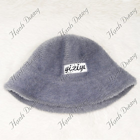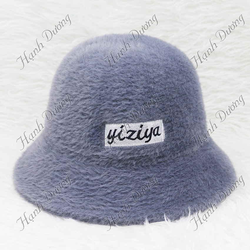 Mũ nhung vành cúp lông xù thêu chữ Yiziya Nón nhung vành cúp lông xù thêu chữ Yiziya chất nhung cao cấp form unisex nam nữ