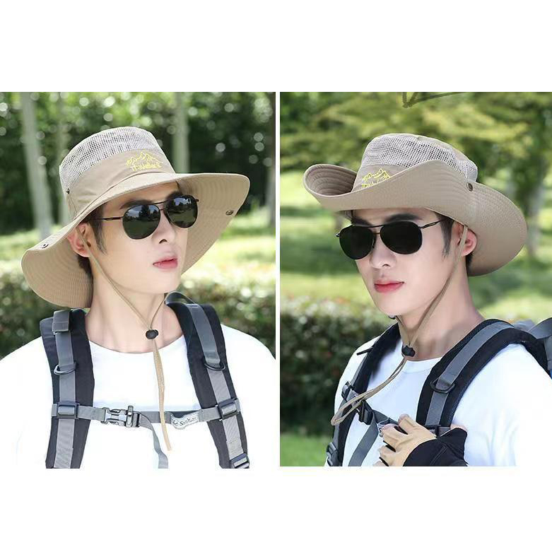 MÔ TẢ SẢN PHẨM Nón nam rộng vành chống nắng thích hợp câu cá,làm vườn leo núi Nón Mũ chống nắng Lý tưởng cho câu cá, làm vườn, cắm trại, chèo thuyền, leo núi và