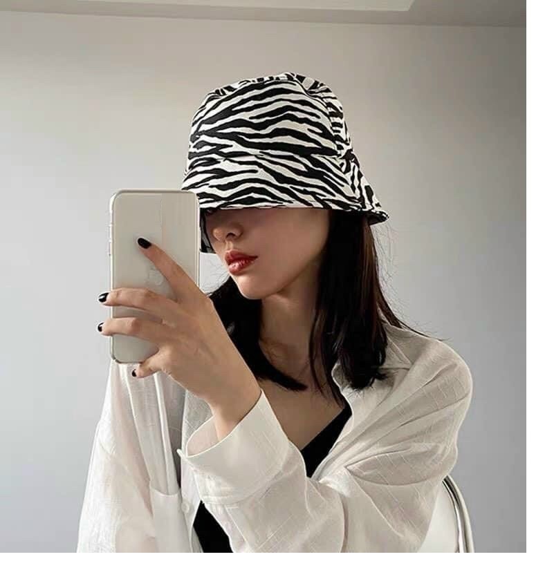 - Chất liệu: Thô - Màu sắc: Đen pha trắng - Họa tiết: bò sữa, vằn - Mũ thiết kế kiểu dáng thời trang, duyên dáng vừa có tác dụng che nắng vừa là phụ