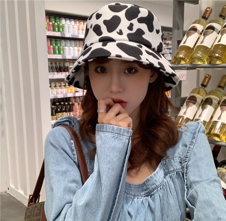 Mũ vành 2 mặt, bucket hat họa tiết bò sữa dễ thương