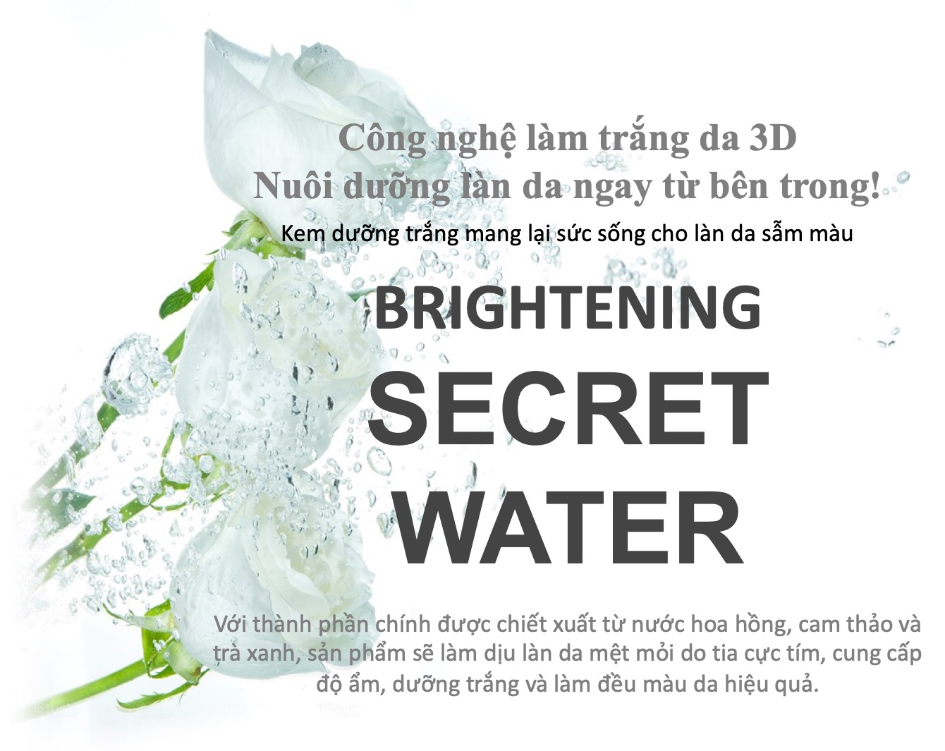 • Sự kết hợp hoàn hảo ba thành phần này trong cùng công thức sẽ tối ưu hóa tác dụng làm trắng, tái tạo sức sống mới và dưỡng ẩm cho làn da