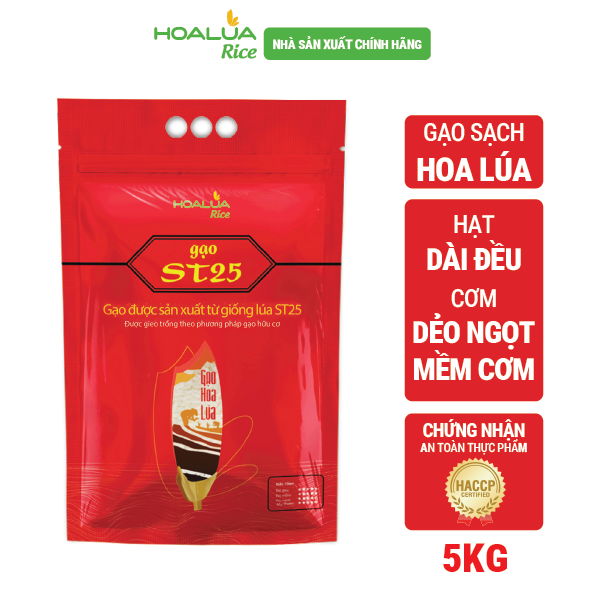 Gạo ST25 Hoa Lúa sản xuất từ giống lúa thơm phẩm chất thượng hạng của vùng Sóc Trăng, được vinh danh là gạo Ngon nhất Thế giới năm 2019 và 2023.