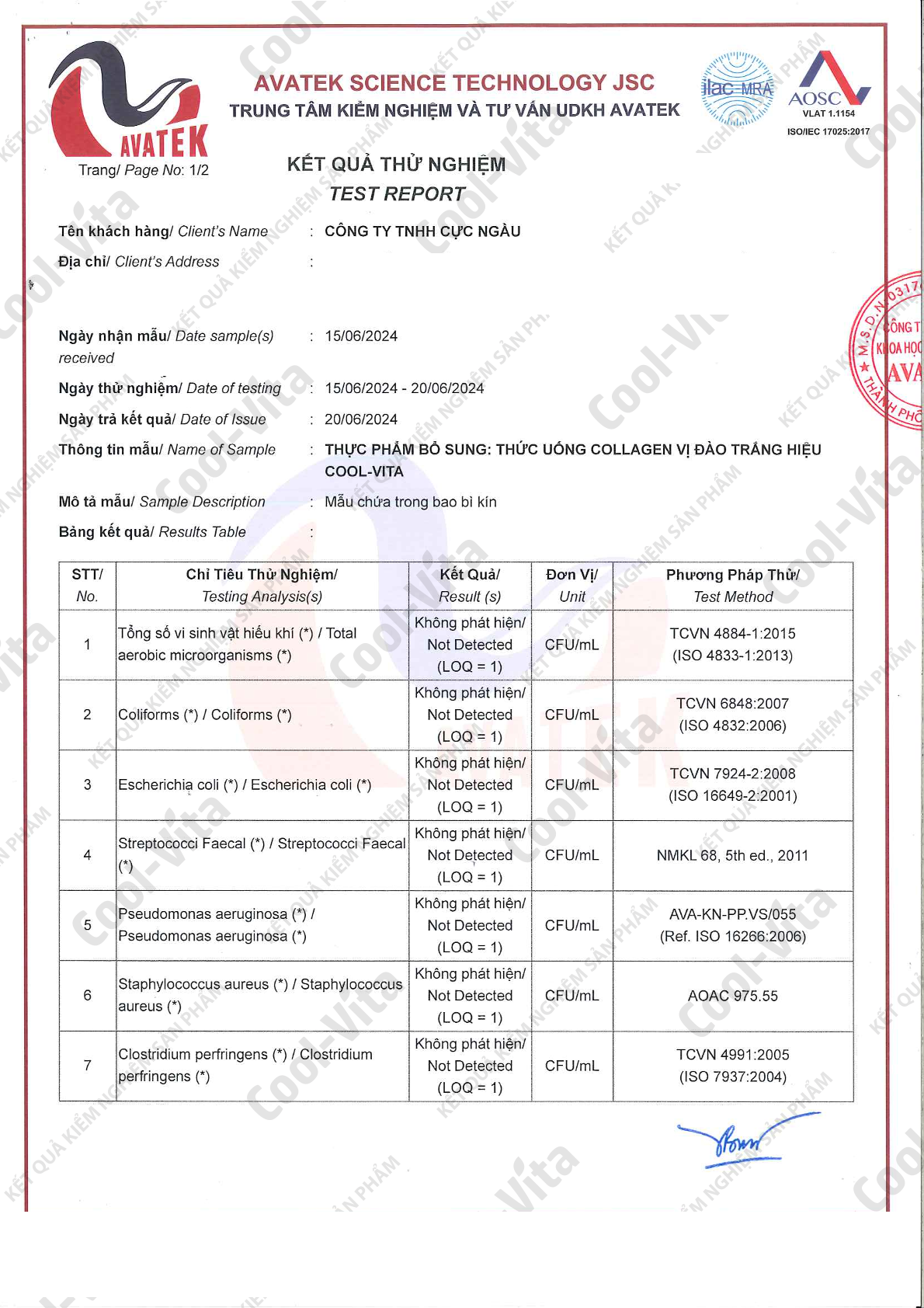 - Đặc điểm vượt trội của nước uống Collagen Cool-Vita: Bao bì nhỏ gọn, hợp vệ sinh nên dễ dàng mang đi mọi nơi và dễ dàng sử dụng bất cứ lúc nào. Chứa 3000mg collagen peptide dưới dạng phân tử nhỏ giúp cơ thể dễ dàng hấp thụ hơn. Sử dụng công nghệ tiệt trùng UHT đảm bảo thời hạn sử dụng lên tới 2 năm mà không làm giảm chất lượng sản phẩm. Lượng calo thấp chỉ chứa 20 kcal và được trang bị Vitamin B3 (Nicotinamide) rất hữu ích cho việc hỗ trợ dưỡng da.