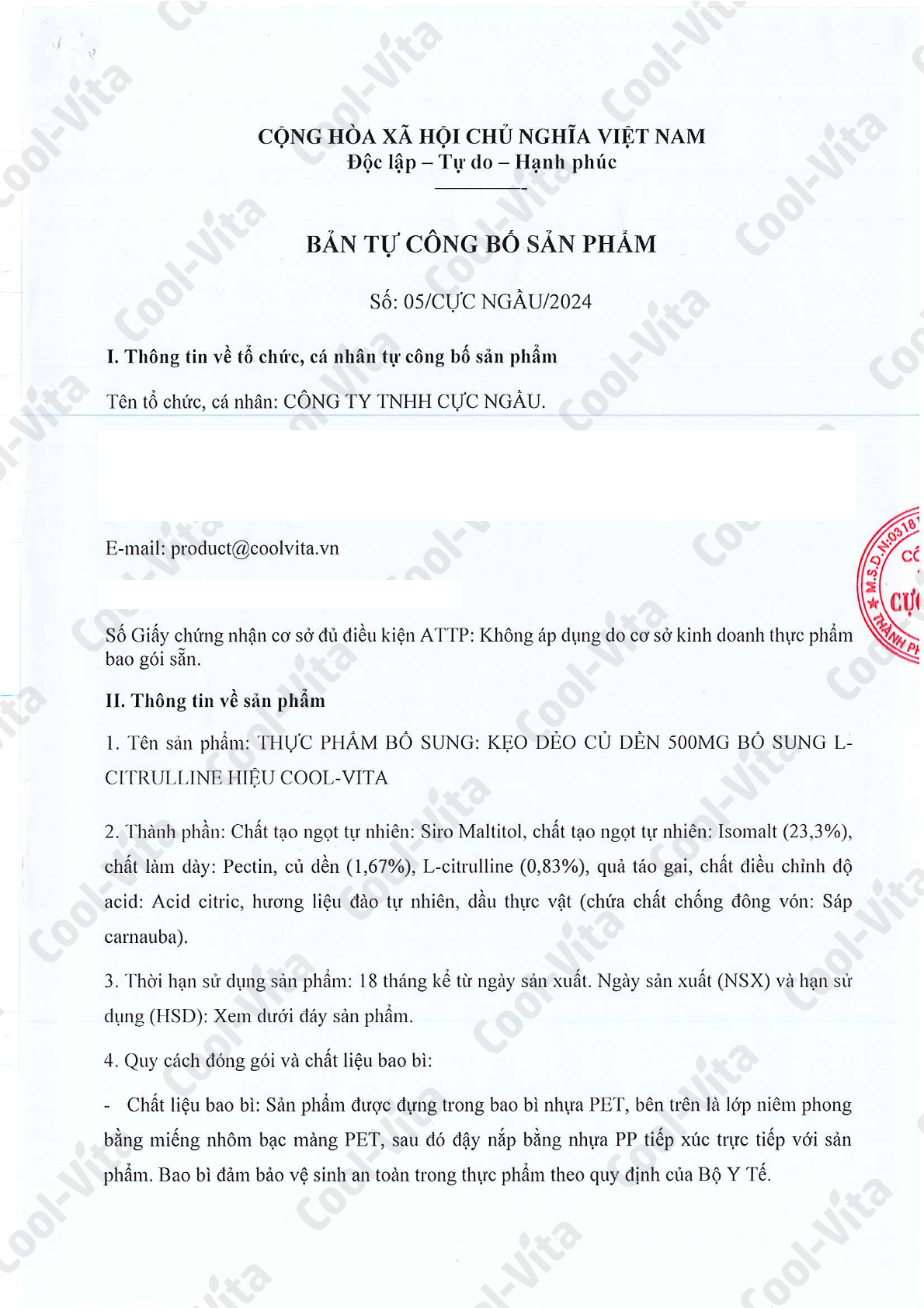 Kẹo dẻo củ dền CoolVita với 500mg chiết xuất củ dền trong mỗi 2 viên kẹo, kết hợp cùng L-Citrulline là sự lựa chọn hoàn hảo hỗ trợ bạn duy trì sức bền dẻo dai, hỗ trợ cải thiện sức khỏe tim mạch và hỗ trợ tăng cường khả năng vận động. Với thành phần chính là chiết xuất củ dền và L-Citrulline, Kẹo Dẻo Củ Dền CoolVita hỗ trợ bạn đạt được thể trạng tốt hơn, hỗ trợ tăng cường khả năng chịu đựng và hỗ trợ phục hồi nhanh chóng sau khi tập luyện. Kẹo Dẻo Củ Dền CoolVita có vị ngọt tự nhiên, thơm vị đào, sẽ là một sản phẩm không thể bỏ qua nếu như bạn là người yêu thích một chế độ dinh dưỡng lành mạnh và có hương vị thơm ngon.