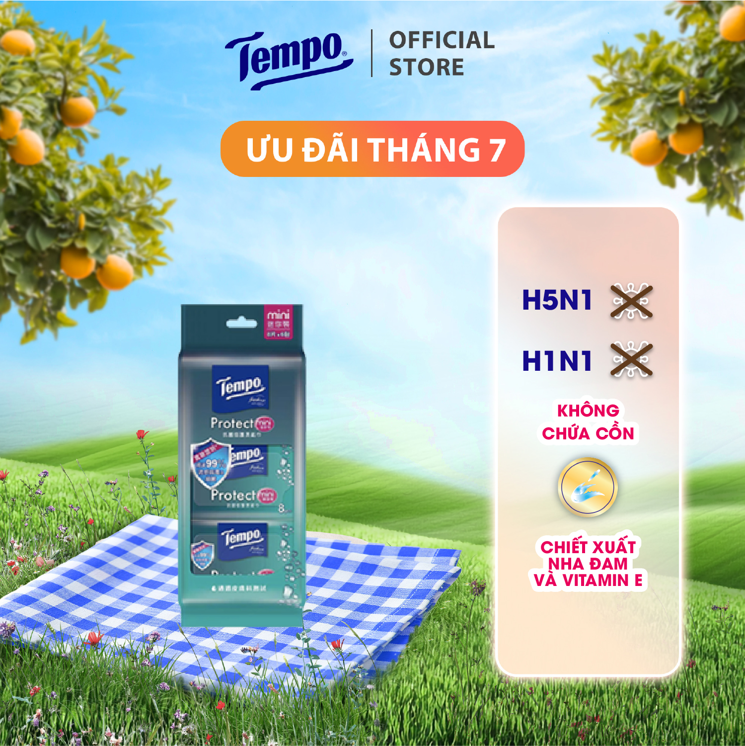[MUA COMBO (1 LỐC KHĂN GIẤY RÚT KM+1 LỐC KHĂN RÚT BẠC HÀ + 1 LỐC REG BH + 1 LỐC PETIT GỖ TÁO + 1 LỐC KHĂN ƯỚT) TẶNG 1 LỐC GIẤY BẾP RÚT] Khăn Giấy Cao Cấp, Thương Hiệu Đức - An Toàn Cho Da   * TEMPO là thương hiệu khăn giấy cao cấp của Đức từ năm 1929. Với chất lượng và công nghệ vượt trội, Tempo đang chiếm lĩnh vị trí số 1 tại thị trường Đức, Ý, Thụy Sỹ... Tempo là thương hiệu khăn giấy được yêu thích và tin dùng tại nhiều quốc gia trên thế giới, đặc biệt là Châu Âu và Châu Á. Được sản xuất theo công thức cải tiến mới và nguyên liệu tự nhiên đạt chuẩn Châu Âu, khăn giấy rút cao cấp Tempo Softpack mềm mịn, chất lượng giấy dày và dai hơn giúp thấm hút vượt trội.   ĐẶC ĐIỂM NỔI BẬT: + Đã được kiểm nghiệm da liễu, an toàn cho da + Khăn giấy 4 lớp đầu tiên trên thế giới + Bền dai ngay cả khi ướt + 100% bột gỗ giấy nguyên sinh, không bụi giấy + Mang lại cảm giác mềm mại + Hoa văn dập nổi tinh tế trên từng lớp giấy   Khăn giấy rút Tempo Softpack dạng gói với 4 lớp giấy cao cấp, không chứa chất độc hại, đặc biệt an toàn cho da nhạy cảm, mang đến bạn cảm giác thực sự yên tâm khi sử dụng. Với thiết kế dạng gói rút tiện lợi, khăn giấy rút Tempo dễ dàng và phù hợp sử dụng tại văn phòng, tại nhà hoặc mang đi picnic...   THÀNH PHẦN NGUYÊN LIỆU: Được làm 100% từ bột gỗ giấy nguyên sinh không kích ứng da và mùi hương tự nhiên dịu nhẹ đầy tinh tế. Hướng dẫn bảo quản: Nơi khô ráo, không để gần nơi có nước  Quy cách đóng gói: 90 tờ/gói, 4 gói/lốc, 16 lốc/thùng Hạn sử dụng: 3 năm kể từ ngày sản xuất Tempo Softpack - Sản phẩm chính hãng của Tempo - Thương hiệu đến từ Đức